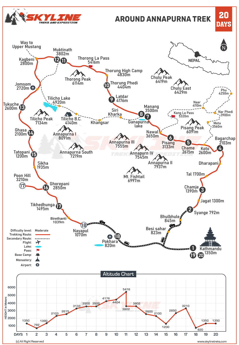 Around Annapurna Trek is at an elevation of 5416 meters.