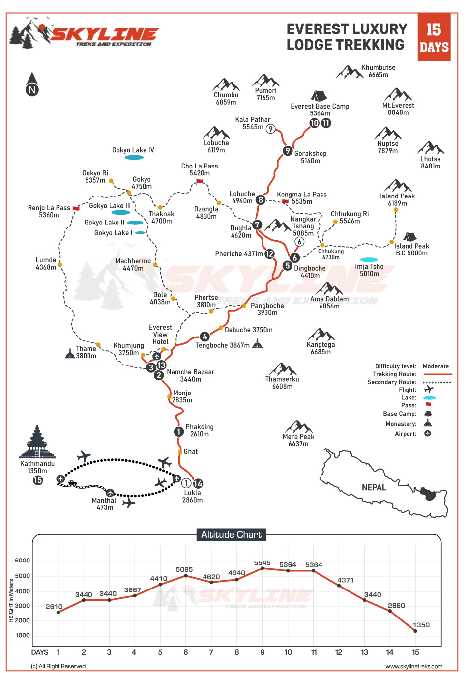 What is the altitude of Everest luxury lodge trekking?