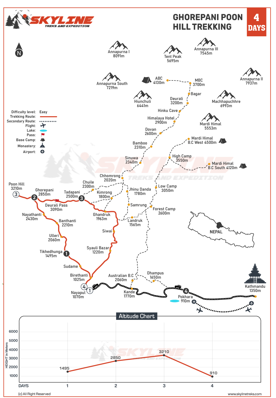 Although the trek reaches a maximum of 3,210 m at Poon Hill, altitude sickness is possible. Prevention tips: