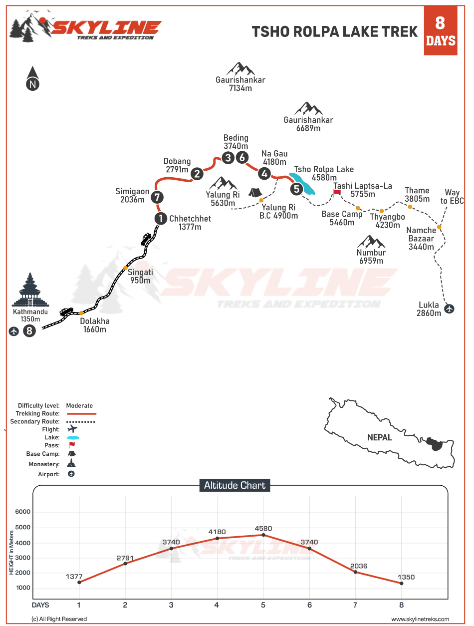 Here are some key details about the Tsho Rolpa Lake trek: