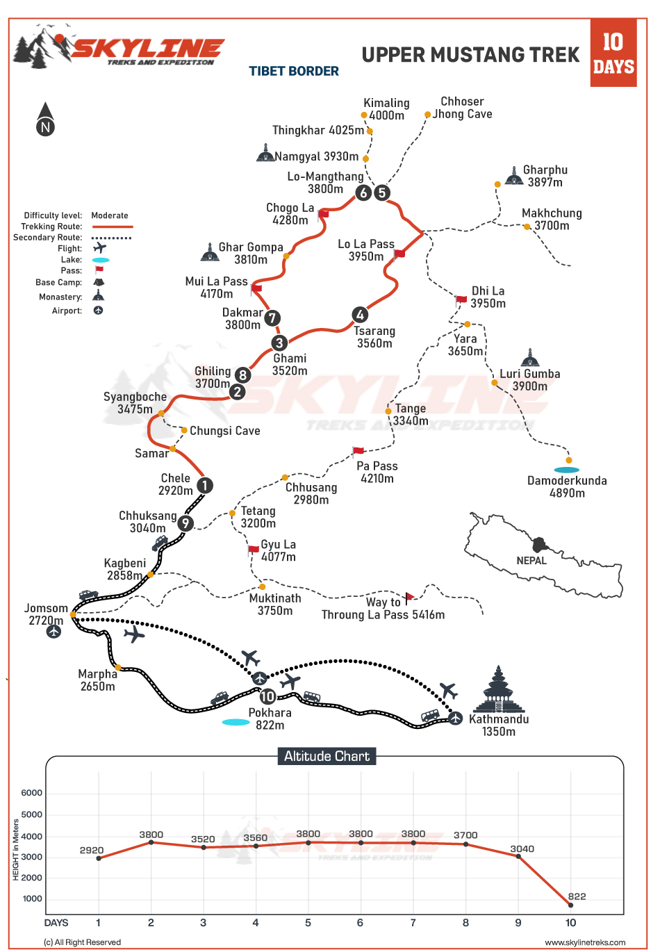 This trek is more than a physical journey; it’s a cultural odyssey that connects you with the soul of Upper Mustang. From the warm hospitality of local tea houses to the spiritual resonance of Muktinath, every step reveals the profound beauty of this forbidden land. Best undertaken during the spring (March-May) or autumn (September-November), the trek promises clear skies and moderate temperatures, ideal for soaking in panoramic views and engaging with local communities. With Skyline Treks’ comprehensive package, including permits, domestic flights, and expert guides, your adventure to Upper Mustang is poised to be an unforgettable exploration of Nepal’s hidden treasures.